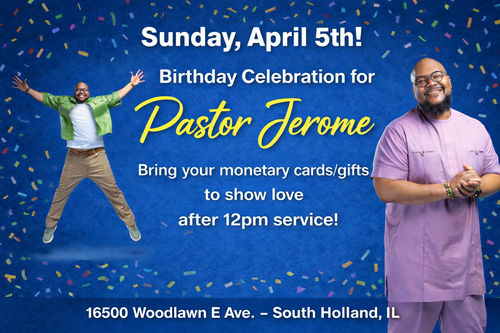 Join us on tomorrow Sunday, April 5th, As we Love & Celebrate our Senior Pastor, Pastor Jerome E. Cook. Come out and help us celebrate Pastor Jerome for his Birthday. We will have a gift box for all cards or Sow your Monetary seed to Pastor Jerome in-person or via www.newlifealive.org
