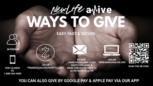 Give by Mail: New Life Alive Church ~ 16500 Woodlawn East Ave, South Holland, IL 60473